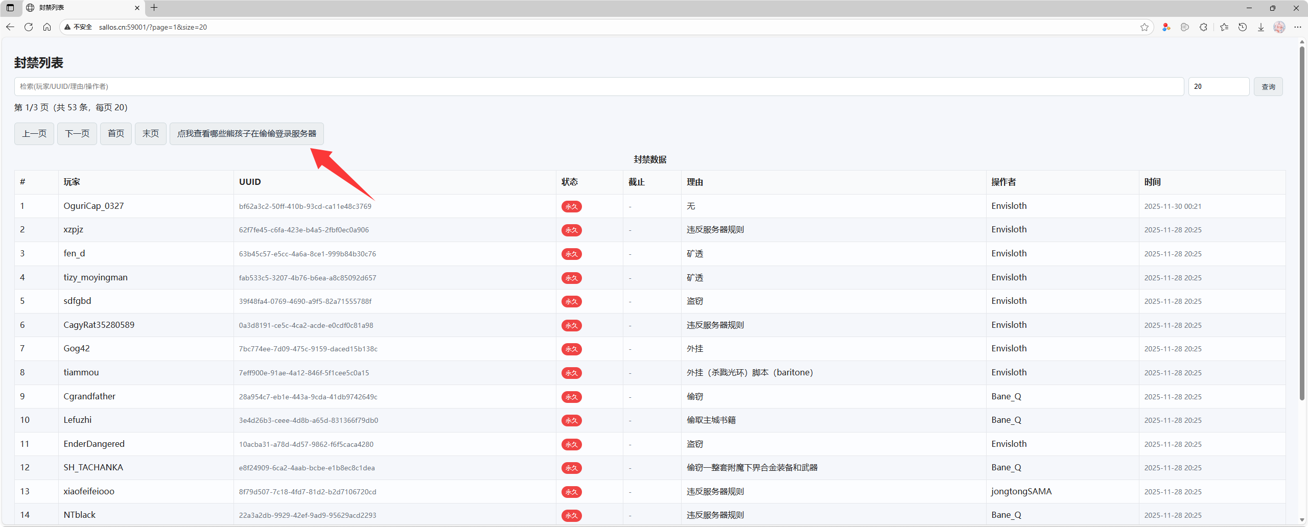 【更新日志】eBan插件重大更新!可以查看有那些熊孩子想视奸服务器啦!